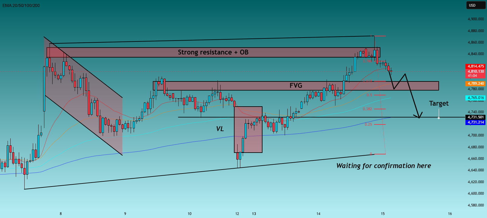If the price breaks above 4880 and continues without any rejection, then the idea is considered invalid and I would stay away. This means the buyer still has control.