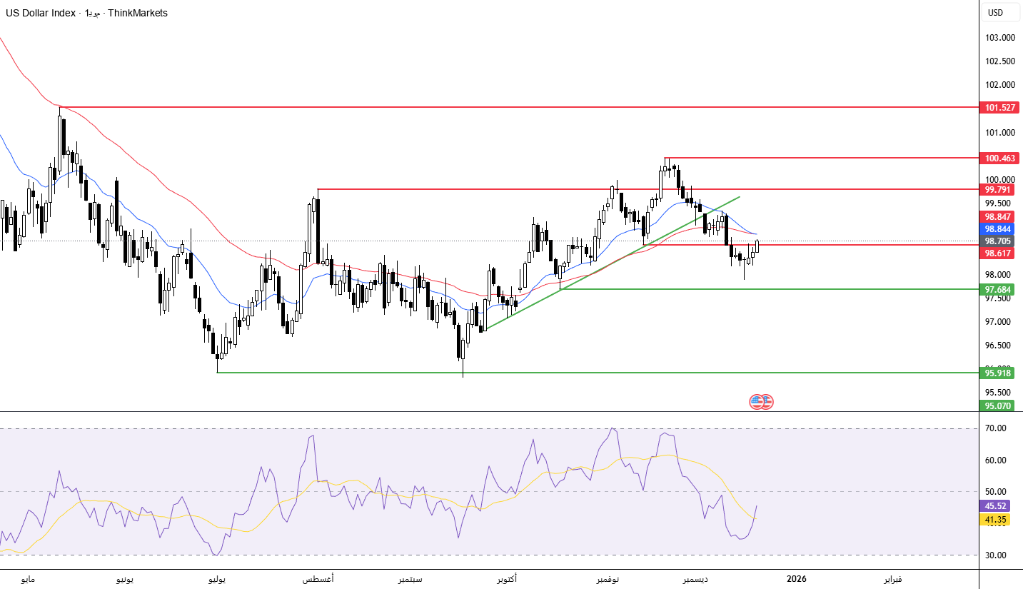 After the Fed announced its interest rate decision, it cut interest rates by 25 basis points to 3.75% instead of 4%. This was the trigger for the transfer of control of supply power, causing the dollar to fall and break through the 98.617 level, and continue to fall until it approached what we call the 97.684 level, and then rebounded above that level to retest the 98.617 correction level.