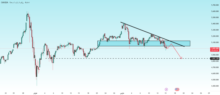 Gold – A bearish structure has formed! gold OANDA:XAUUSD Fire Wave_Gold After the price peaked at (5186 – 5193), it formed a lower peak at (5120 – 5122) and continued to break through the support level (5050 – 5060) while…
