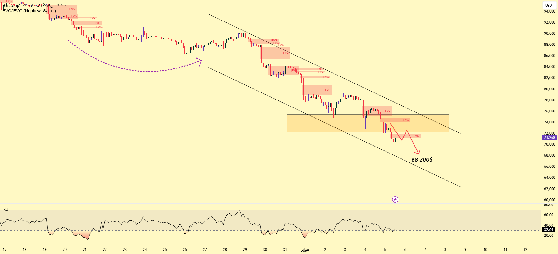 Bitcoin (2 hours) – BITSTAMP: Sustained downward pressure on BTCUSD (WaveToSober) – TradingView