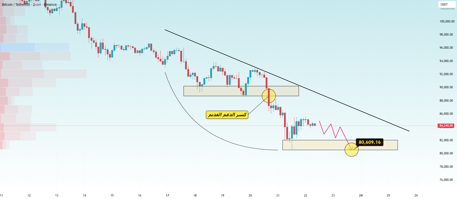 84,000, but unlikely to hold out for the next few hours → Tonight, we will see 82,000, Sunday morning, 80,600, and early Monday, we may see 78,000.