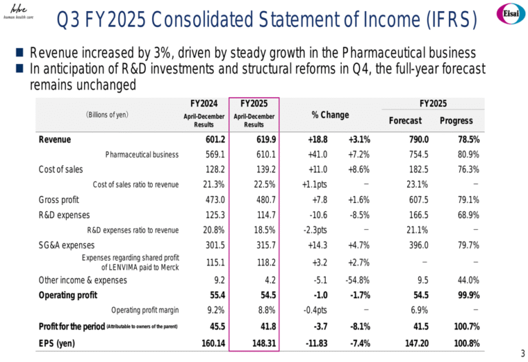 Eisai’s fiscal 2025 third quarter slideshow shows LEQEMBI sales and strategic oncology investments growing 109% Source link