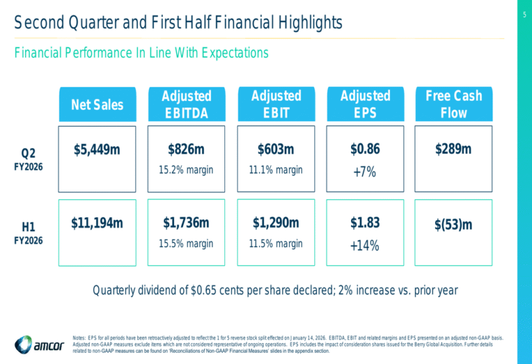 Amcor Q2 2026 Slide: Synergies drive EPS growth despite volume challenges Source link