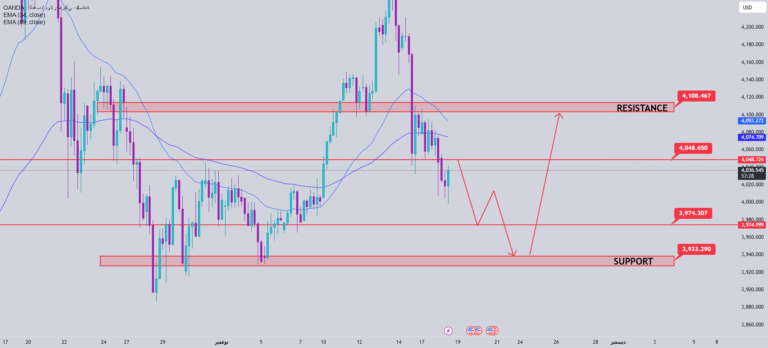 XAUUSD remains under downward pressure, with sellers taking the clear advantage, pushing the price towards the 3933 support area. Buyers’ efforts to keep prices at the trendline are very weak, indicating that this support is at risk of being breached…