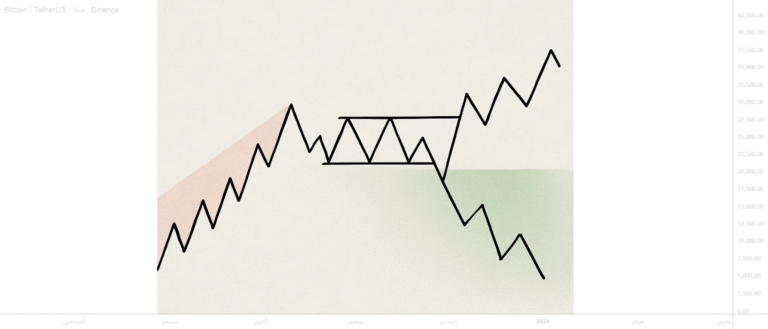 As derivatives markets continue to record funding ratios tilted towards weak shorts and spot cash flows, Bitcoin is moving in line with the bearish structure shown on the chart. The early accumulation area has been broken through, and the failure…