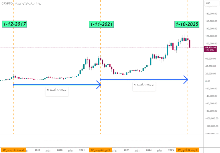 Bitcoin (History Repeats Itself) (Monthly Frame) Bitcoin Cryptocurrency: BTCUSD Samir Alofi Bitcoin still repeats and respects its time cycles From the peak of the previous cycle in 2021 to 2025, the peak was recorded after 47 months. This is the…