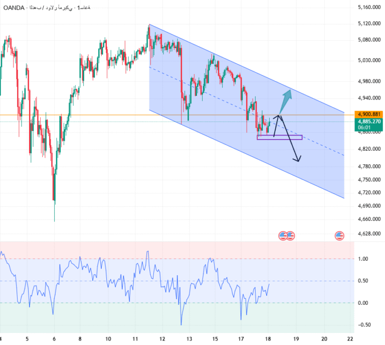 golden update gold OANDA:XAUUSD MR_gold2 ──────────────────────────────────────────────────────────────────────────── 📉Technical Analysis • Current general trend: Bearish within a clear bearish price channel. • Price is currently touching the lower border of the channel. • There is a strong supply area between 4,990 –…