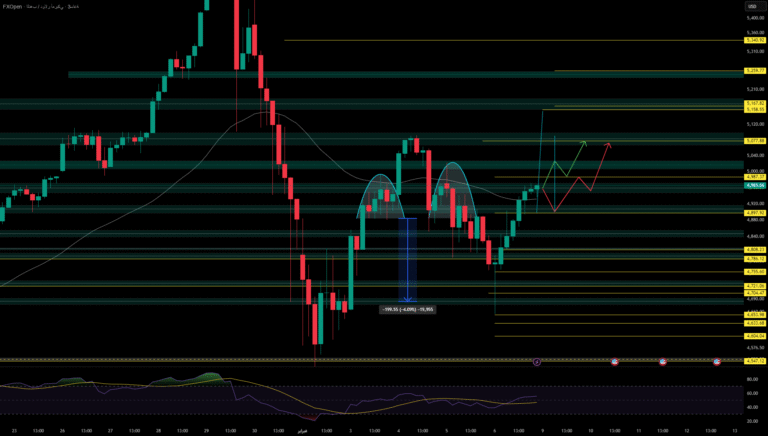 Gold prices face pressure near $5,000 Here are the most important technical features of the current gold situation: What’s happening now: Gold prices (around $4,964) are currently trading in key trading ranges after rebounding from a sharp decline. As shown…