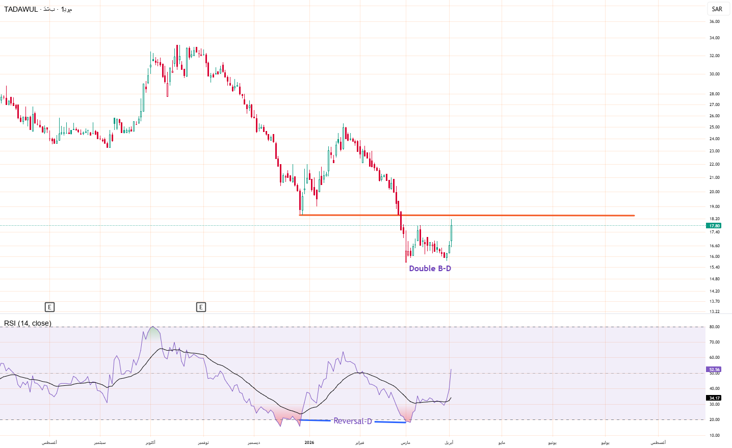 Main resistance: 18.40 riyals level (thick orange line), which was a previous breakout area and later turned into strong resistance.