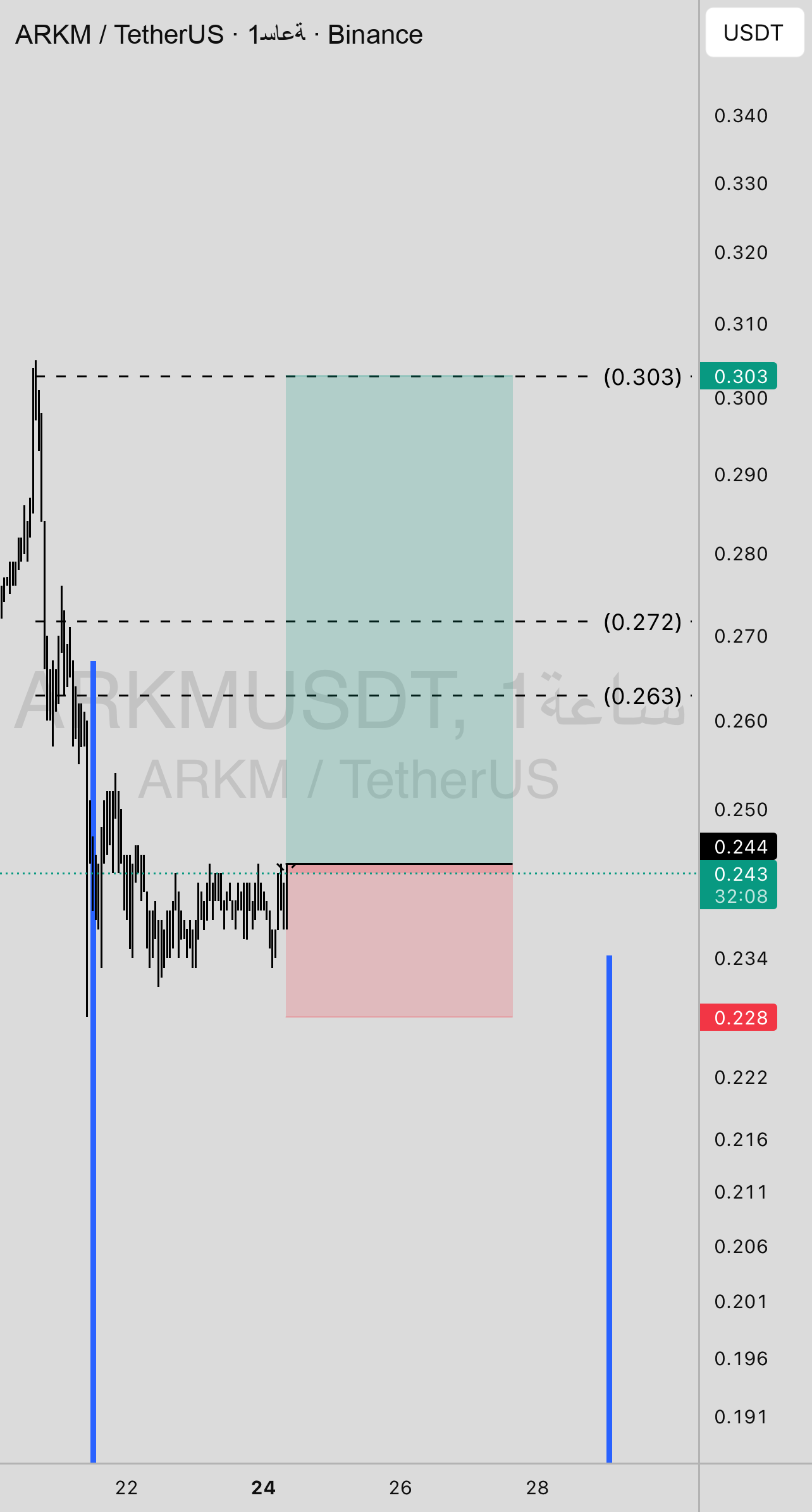 After a sharp decline on the hourly frame, we have a consolidation area. Our target is 24% and our stop loss is 6.55%.