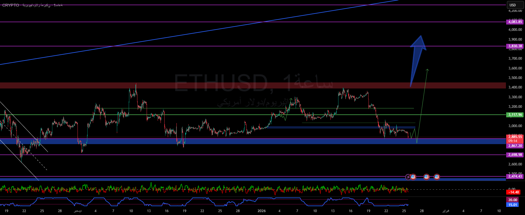 Stop loss: hourly close below 2,860