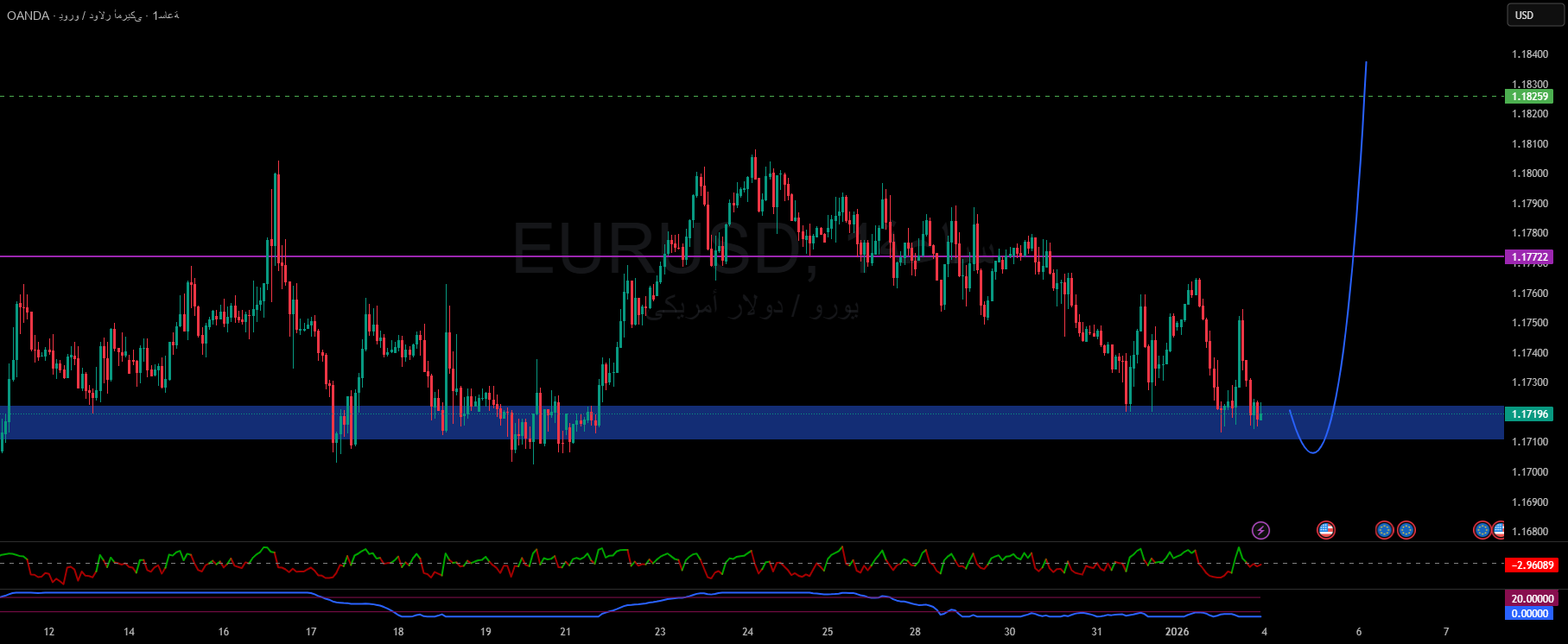 The price is currently positioned around 1.1720, which is a neutral area and is not suitable for random entry.