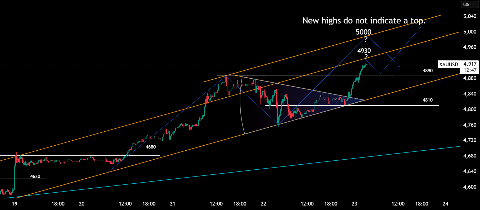 Upside resistance: The key psychological level is $5,000 an ounce. A successful move above this level would open the way to institutional price targets such as $5,400.
