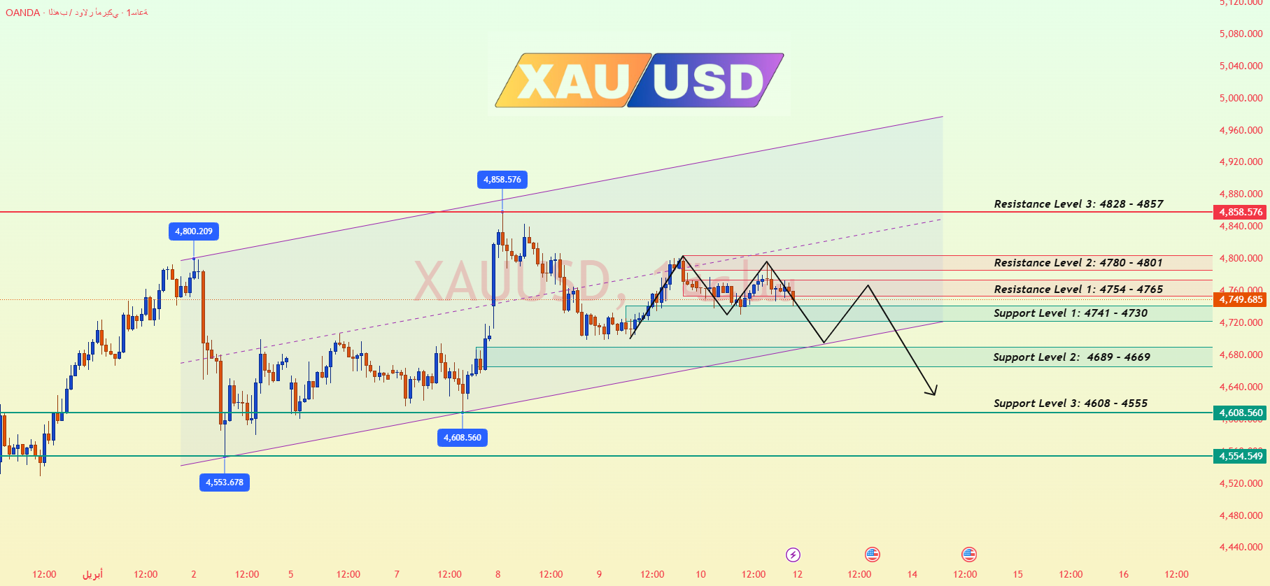 ● 4828 – 4857 (key resistance areas on the 4-hour frame)