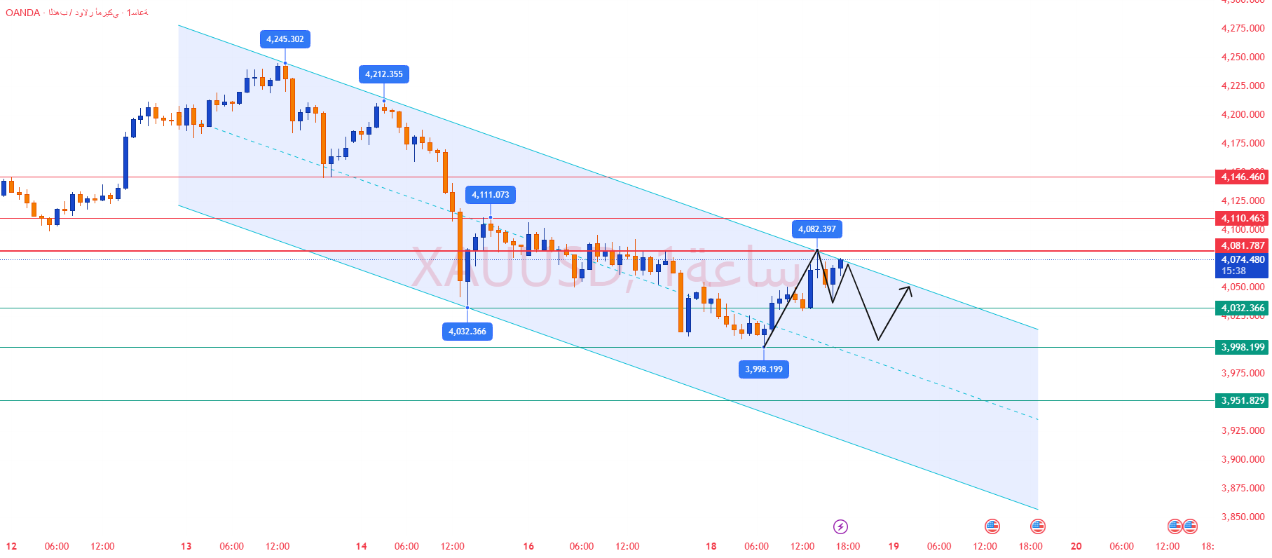 The price previously broke through the lower boundary of the channel (near 3980). Although it rebounded, it is still below the middle boundary.