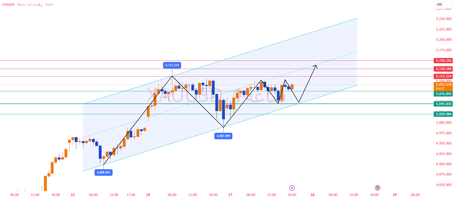 As long as the price remains above the key support area of ​​5020-5050, the bullish structure remains in effect and pullbacks should be viewed as buying opportunities.