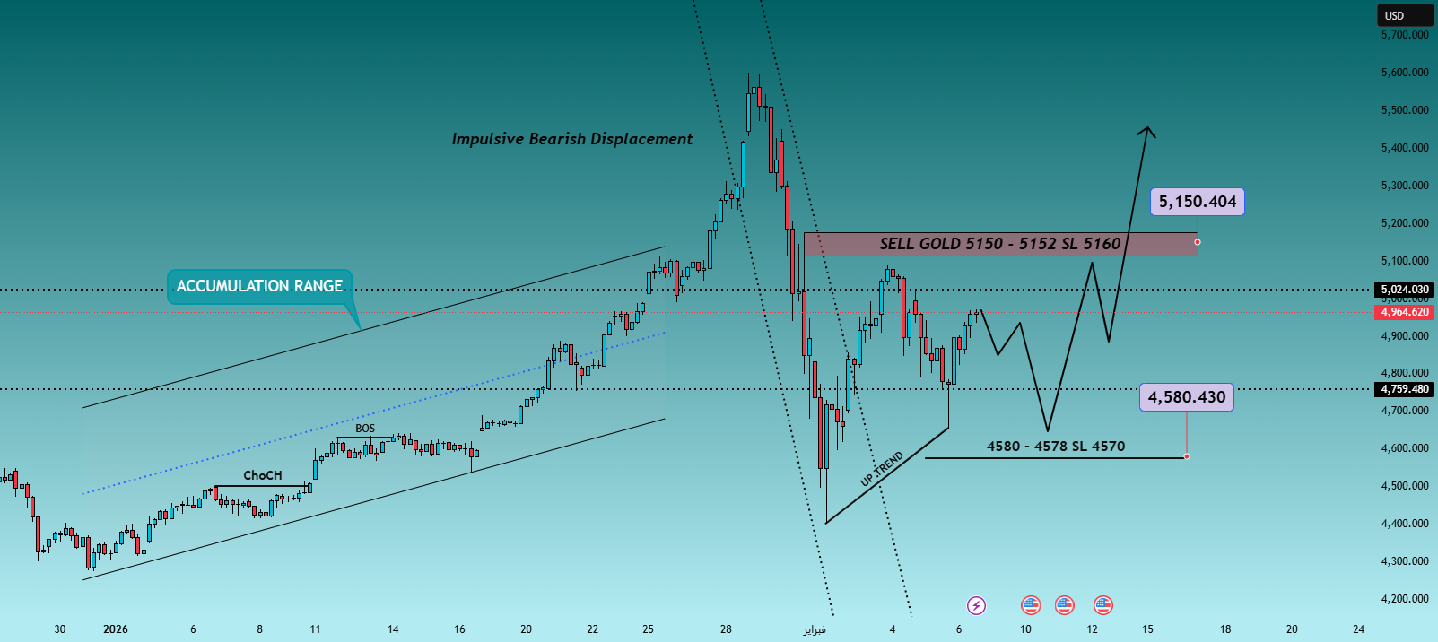 ✔ Price moves to 5150–5152 on news or USD weakness