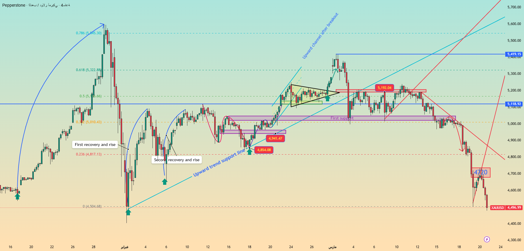 Resistance zone: $4615-4637 (strong resistance zone), $4735 is the mid-term boundary line.