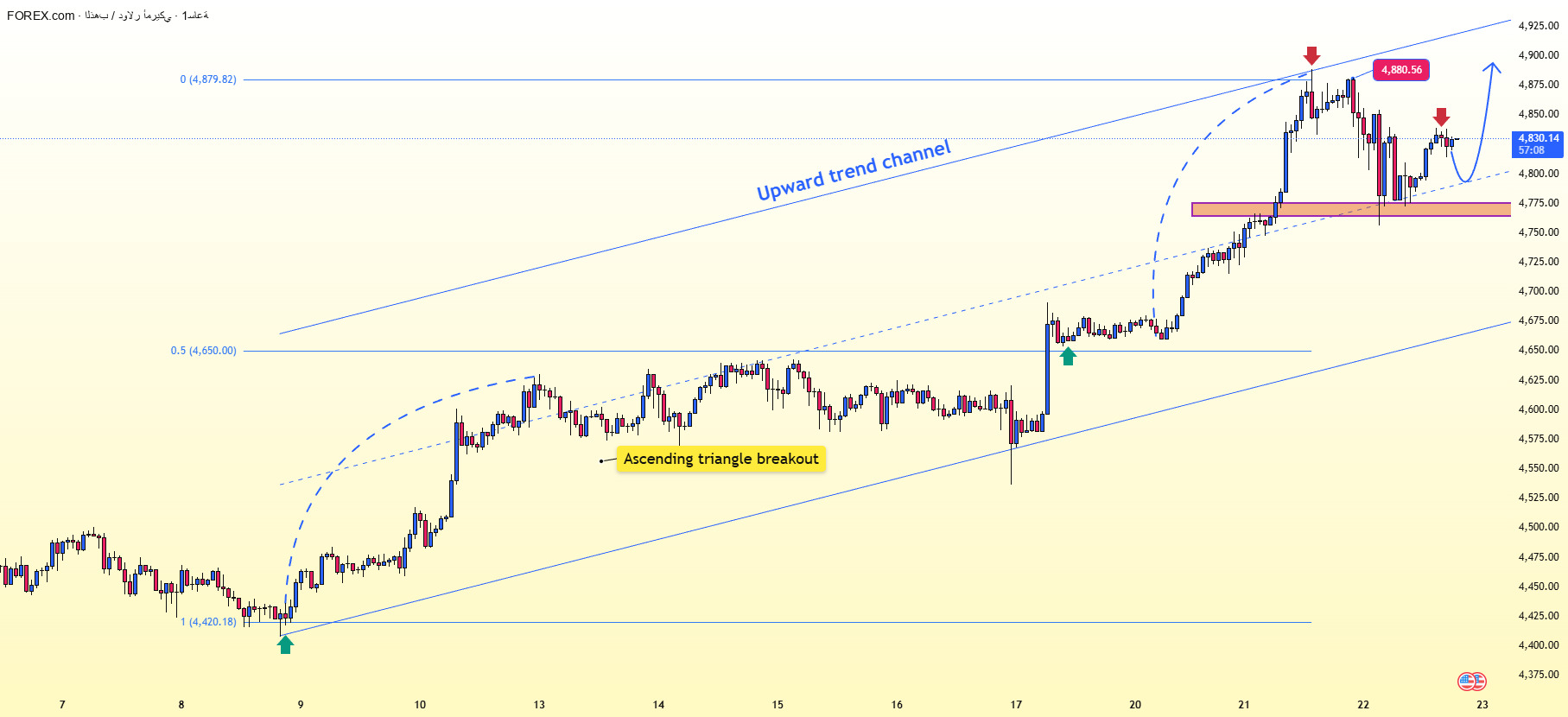 Selling strategy: Sell in batches at 4840-4845, with a stop loss of $8 and a target of 4800-4750. If the price falls, the target will be added to 4700.