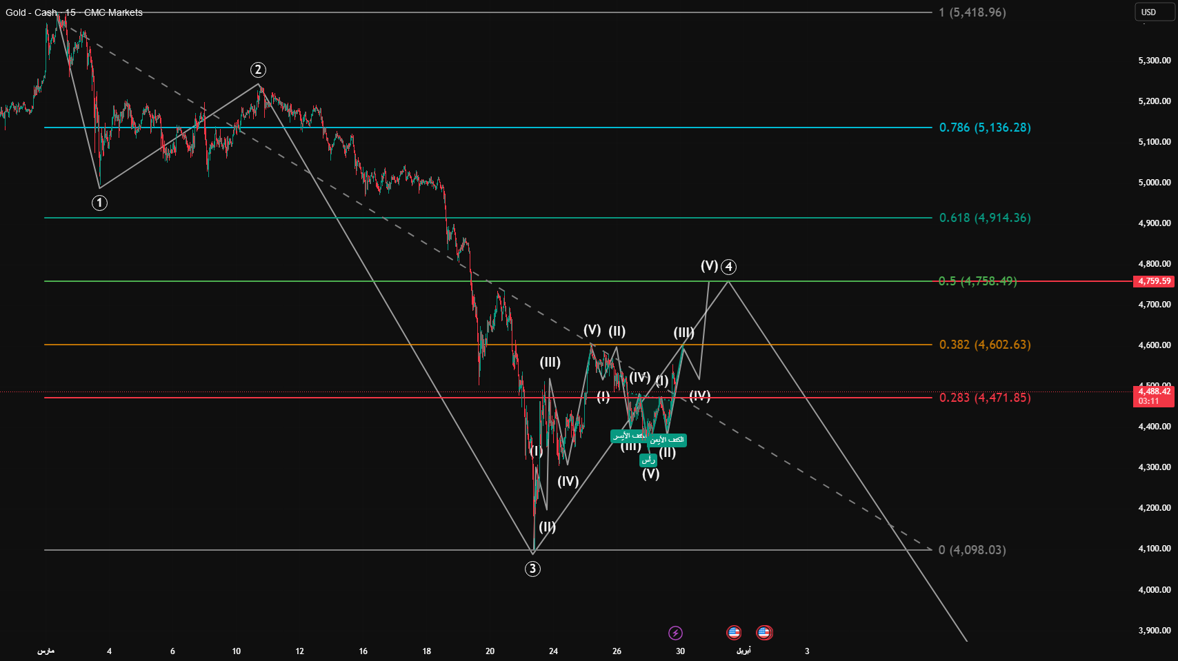 Gold on the 15m Wave Frame Develops a Very Likely Scenario for CMCMARKETS:GOLD — TradingView