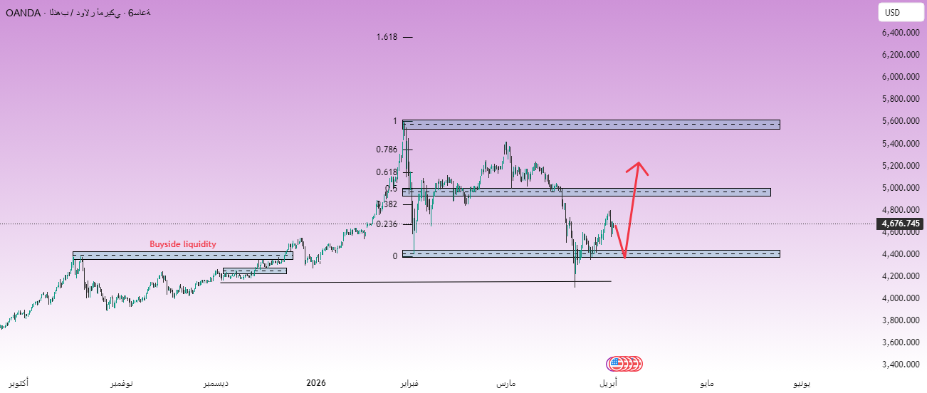 Gold reacted from the 4,400 demand area, which has now become the first level to protect the current rebound. As long as this area remains intact, the market has room to rise towards the next resistance level around 5,000 points.