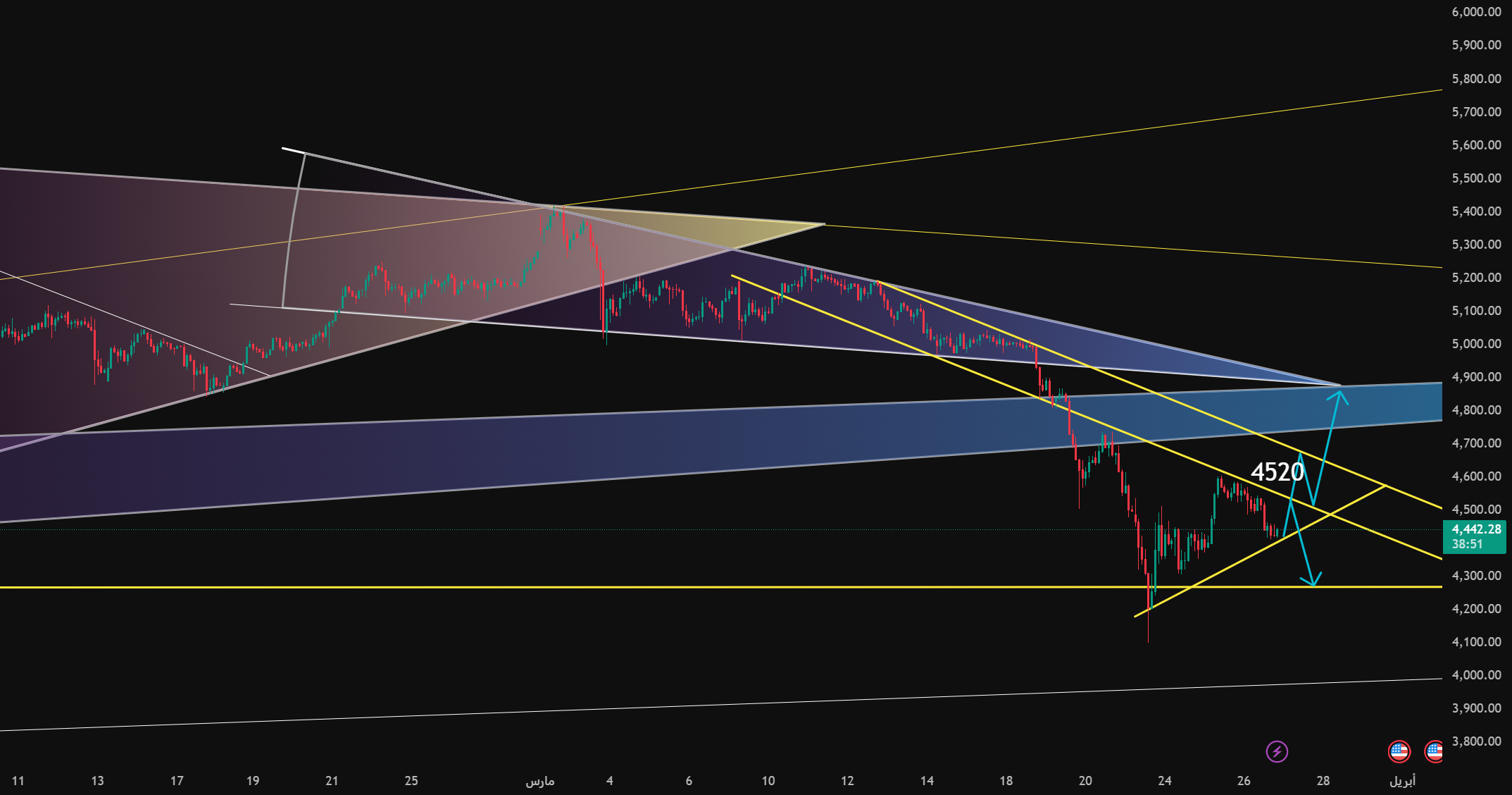 Upside Breakout: If the price breaks out strongly and stabilizes at $4,560, you should close short positions and open a small buy position with a price target between $4,600 and $4,650.