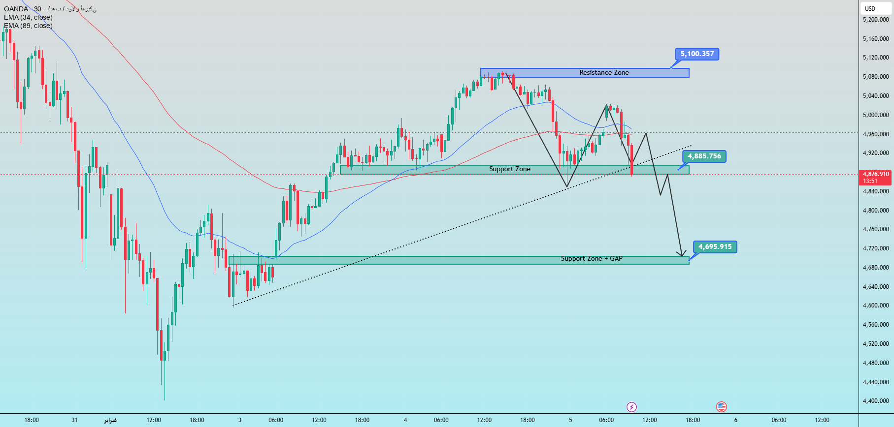 4887 – 4885 and rising trend line