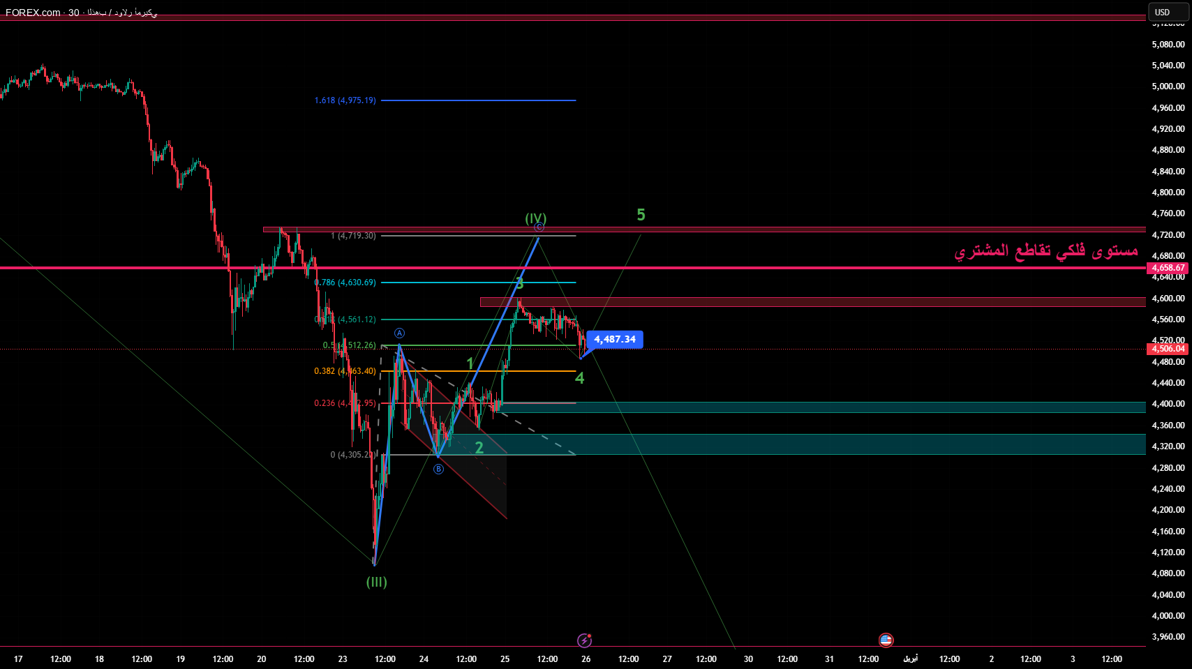 Gold update wave 4 c wave 5 near the end 30m