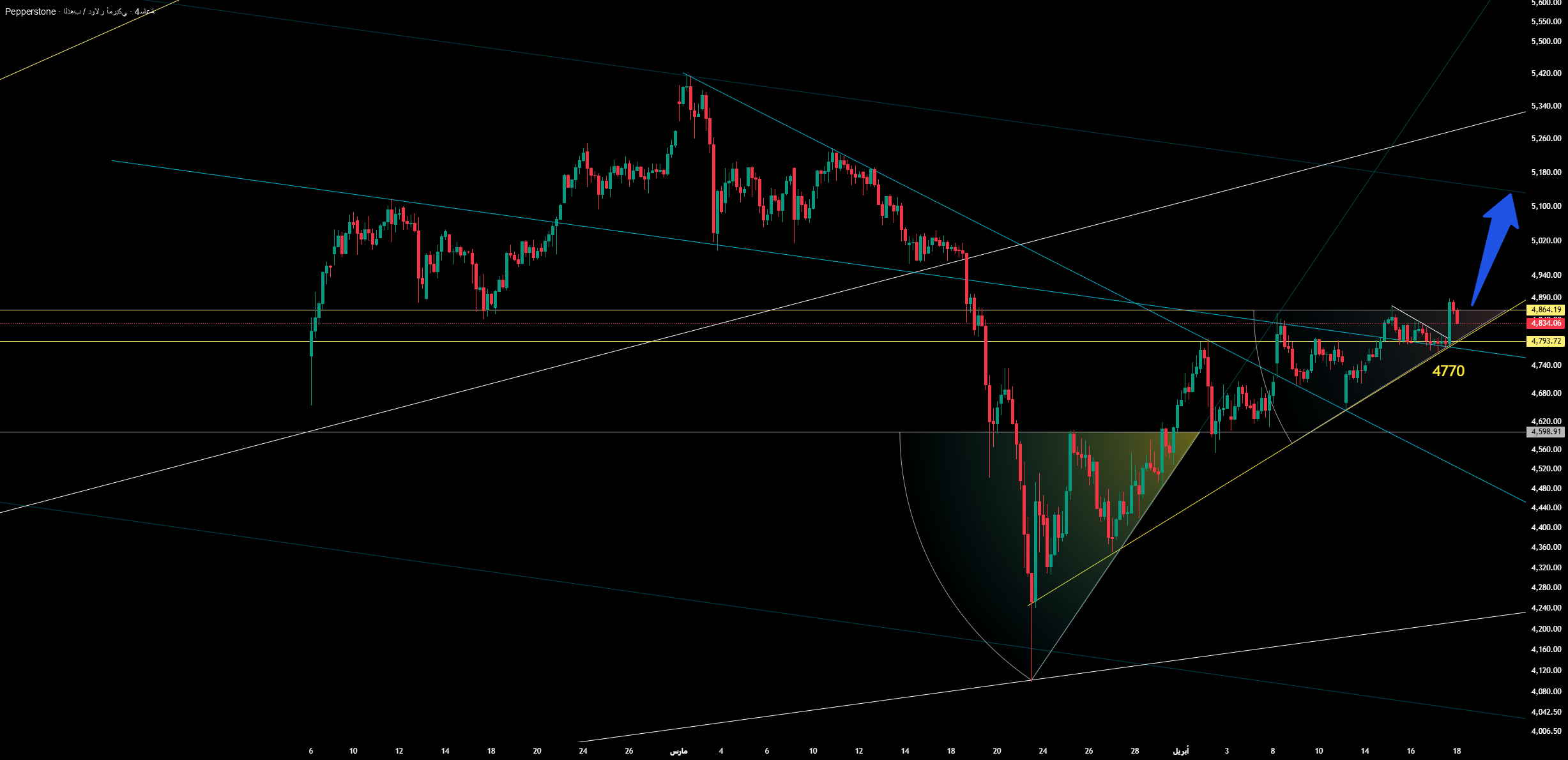 It would be better if the rally does not break above 4840 and start falling, as this would indicate that the sellers are stronger than you expected.