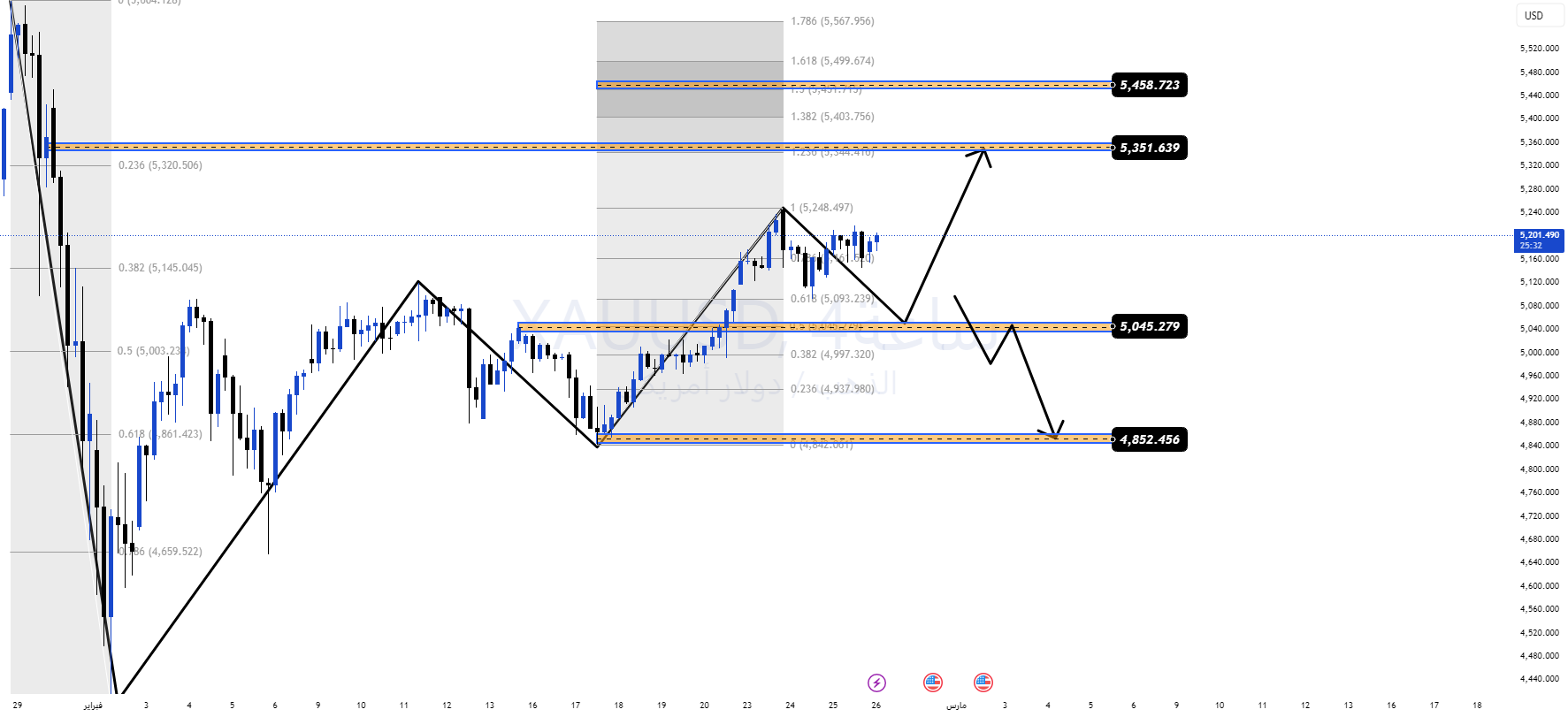 If the price regains momentum and breaks above 5,351 and closes strongly on the 4-hour frame, we will open the way to 5,458 and higher.