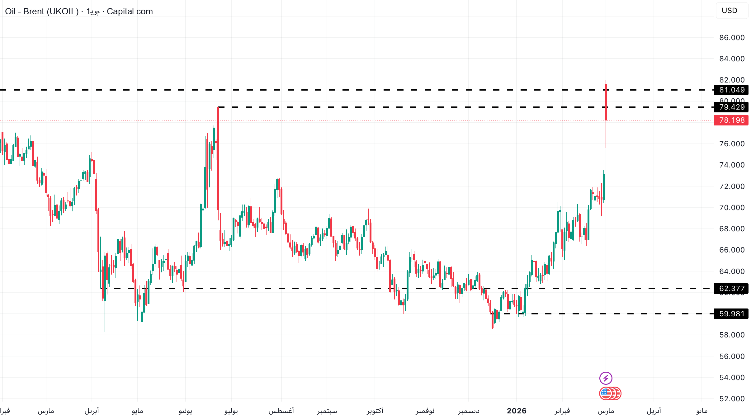 That’s what’s interesting about the current movement. The geopolitical shock pushed oil prices directly into one of the resistance areas on the higher time frames, below the highs formed during the previous rally. In other words, the news was the catalyst, but the market has reached levels that are actually technically significant.