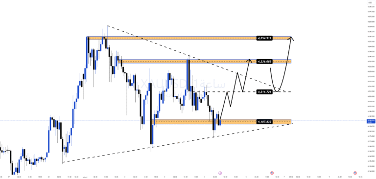 Gold continues to move within a bullish pressure + support pattern, indicating…