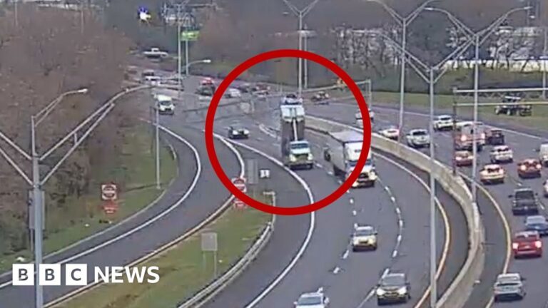 An Ohio dump truck sparked chaos when it crashed into a highway…