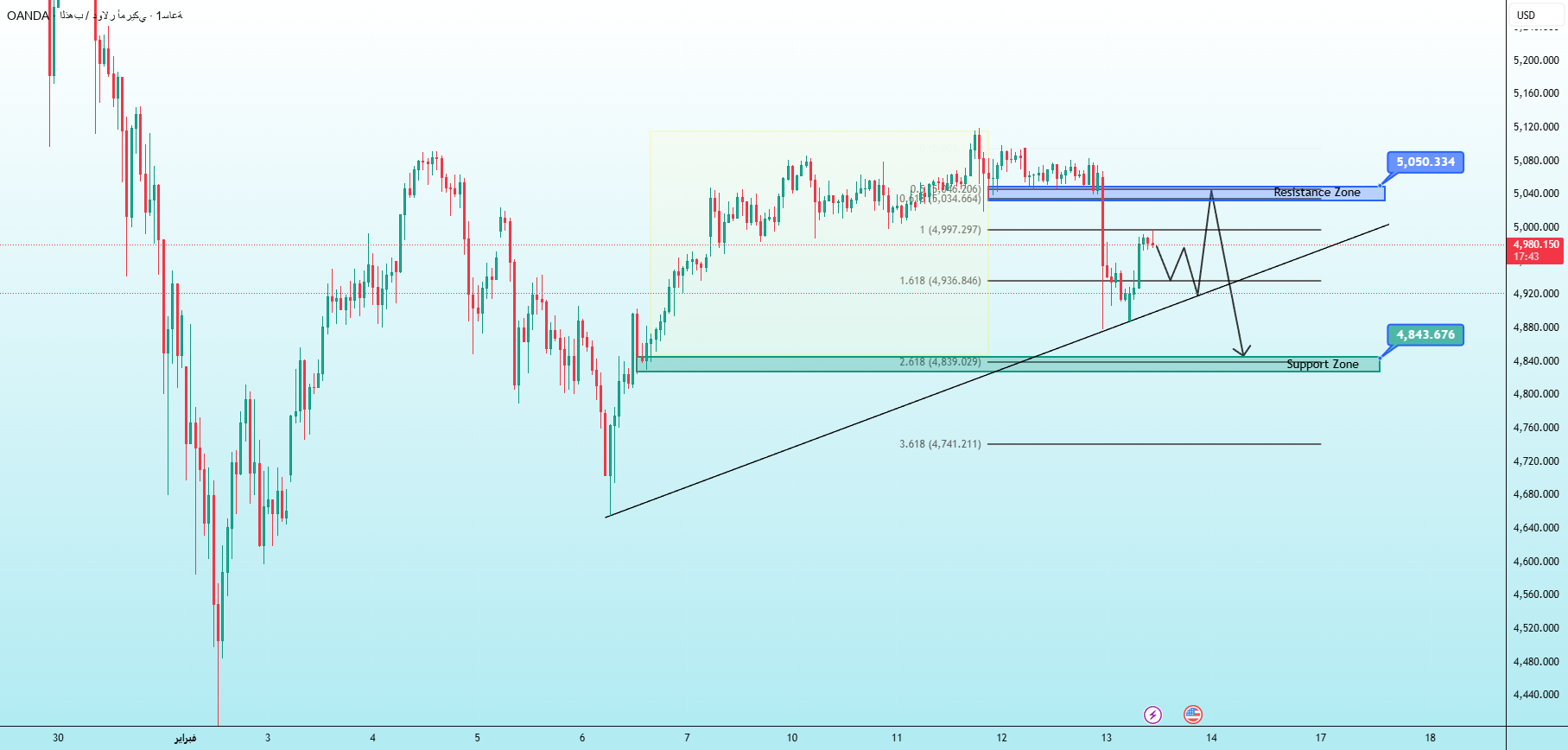 5,048 – 5,050: Strong resistance zone (recent high + distribution zone).