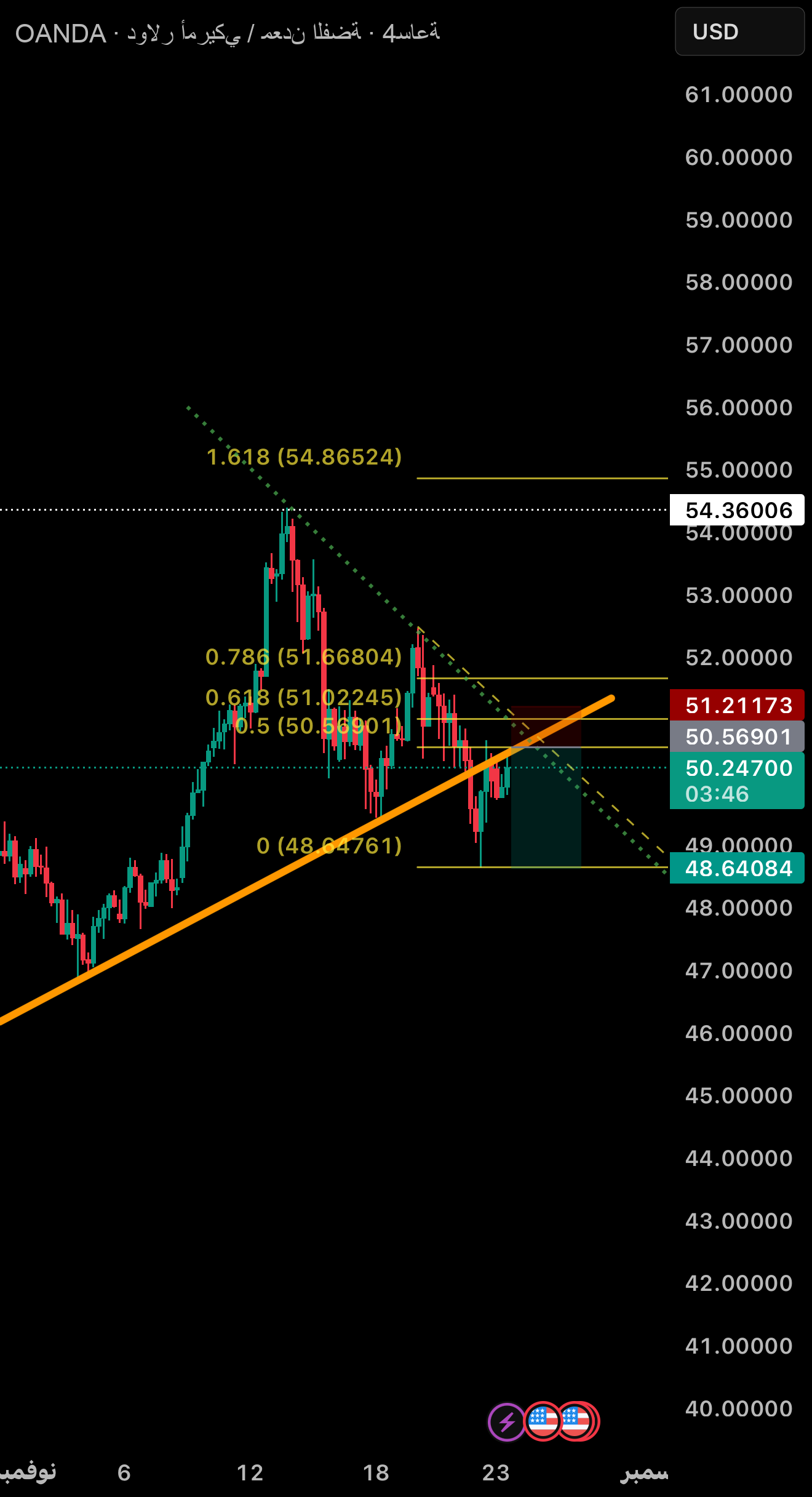 Sell silver when silver reaches the 0.5 Fibonacci level and the trend direction on the 4-hour frame is down to the next liquidity level.