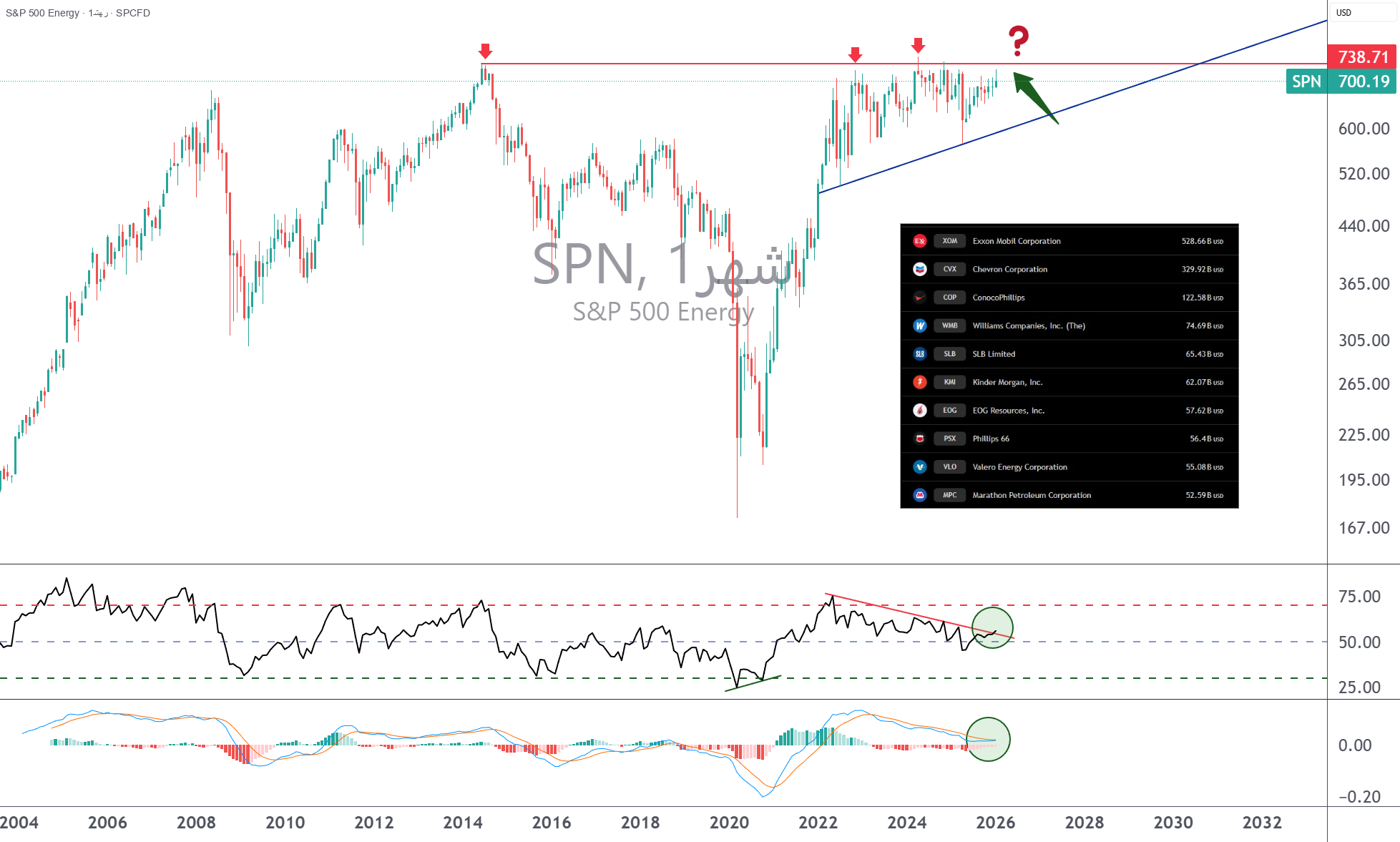 Technically, the S&P 500 Energy Index is currently at a critical level in its price history. Prices are currently trading near all-time highs, which is a major long-term resistance area. A clear and confirmed breakout of this top would be a strong first-order bullish signal, confirming the resumption of the major uptrend after a multi-year consolidation. This technical structure is often interpreted as an entry signal for institutional investors who are attracted by positive momentum and a favorable macroeconomic environment. If this breakthrough is achieved, the S&P 500 Energy Index could enter a new phase of reassessment, supported by fundamental geopolitical factors, sectoral flows and decisive technical confirmations.