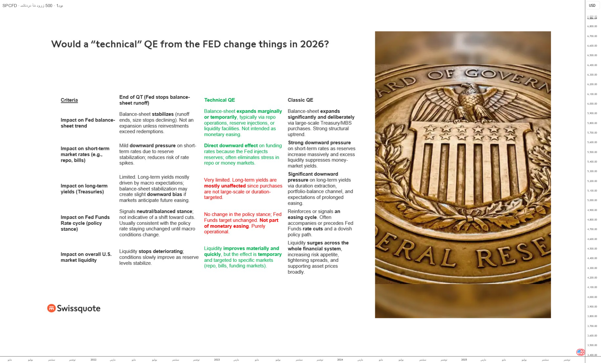 In practice, technical quantitative easing is mainly used to stabilize the operation of the money market: repurchase operations, temporary budget adjustments, and targeted intervention when tensions arise. This prevents a sudden spike in short-term interest rates, but it doesn’t mean the Fed is entering a broad easing cycle. Therefore, investors should avoid reading too much into the term “QE,” as the goals here are operational rather than macroeconomic.