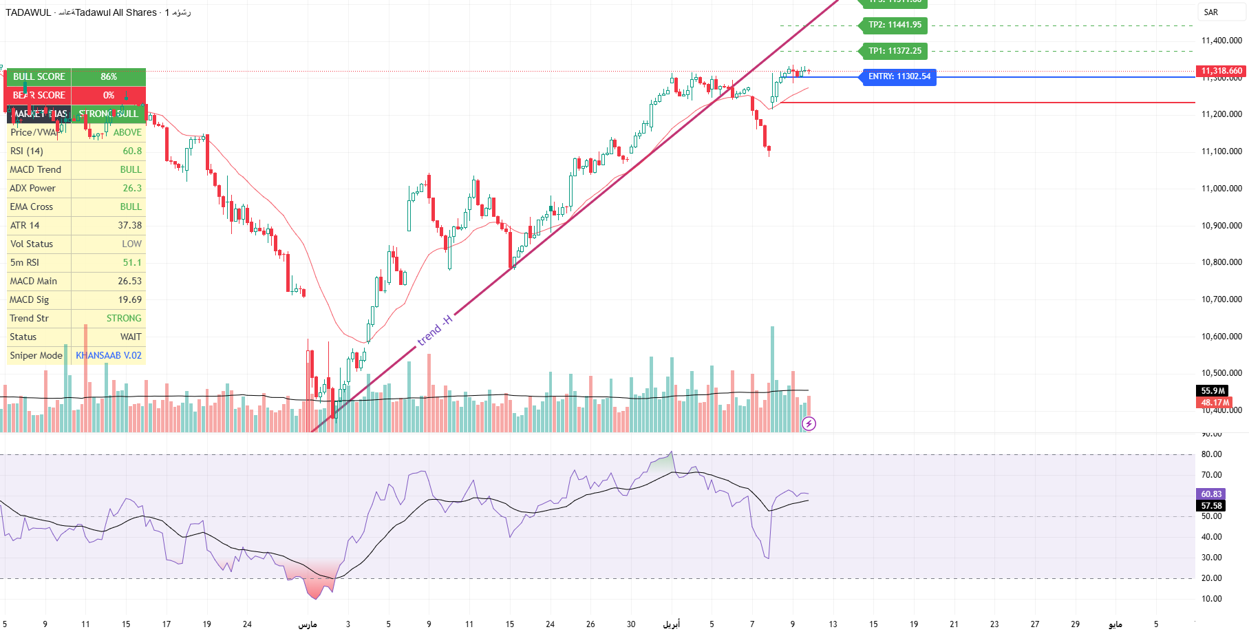 Expected trade success rate: 71% (based on bull scores shown in the chart).