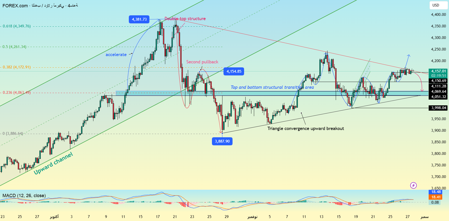 📊4-hour chart: The triangle consolidation pattern still exists, and the downward trend line resistance is located in the $4173-75 range. A strong break above this resistance area could open new upside. 🎢