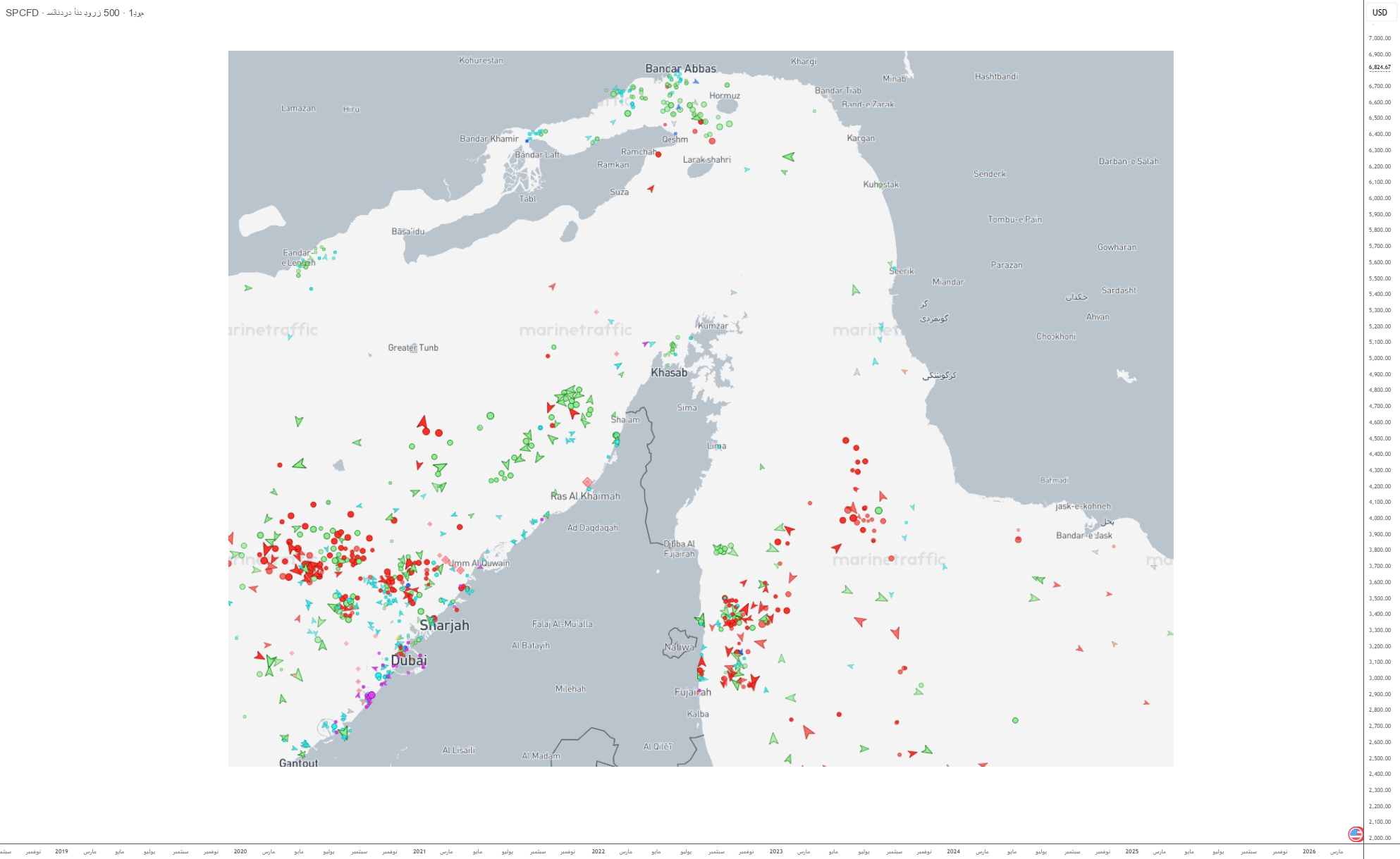 The image below shows the movement of oil tankers through the Strait of Hormuz (Source: MarineTraffic)