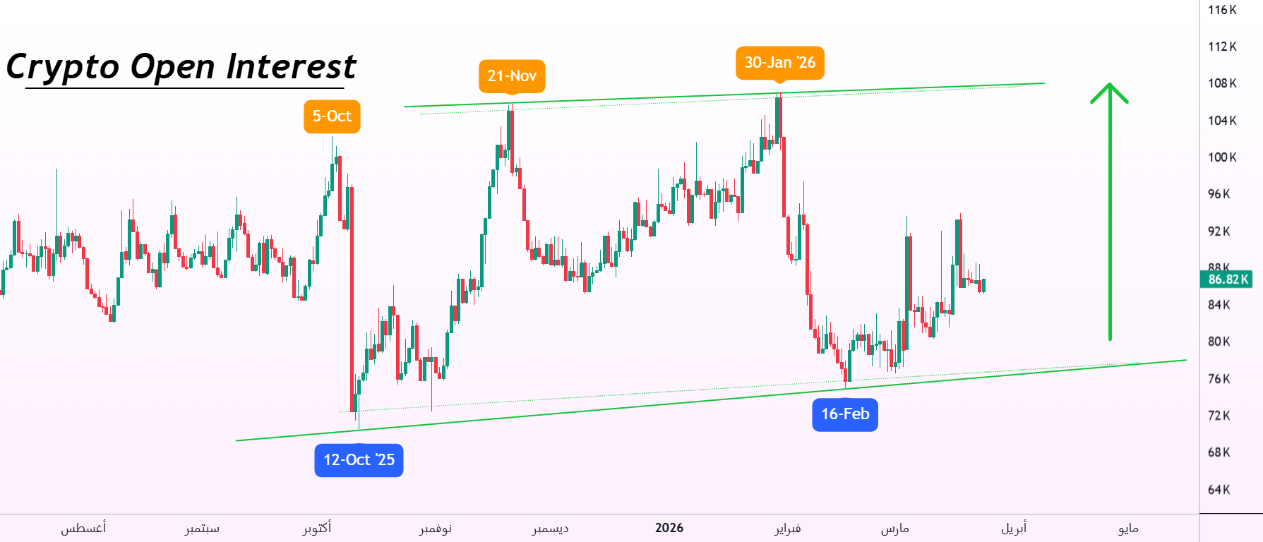 For example: Bitcoin bottomed on February 6, but OI (open interest) did not fall until ten days later, on February 16.