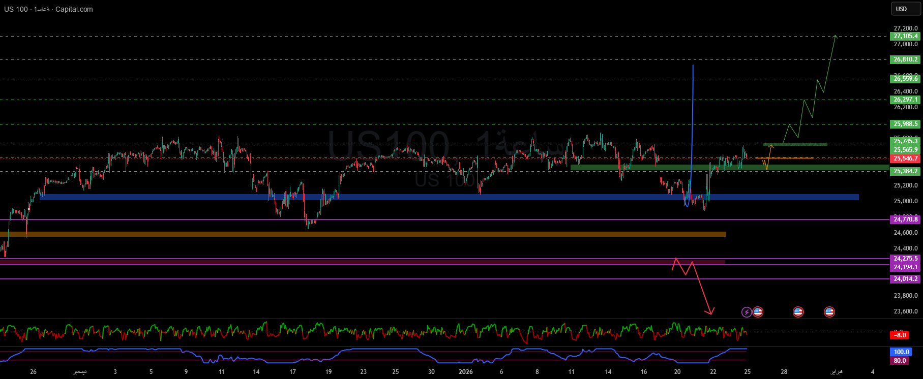 After a sharp move from below, the price is currently trading around 25,546,