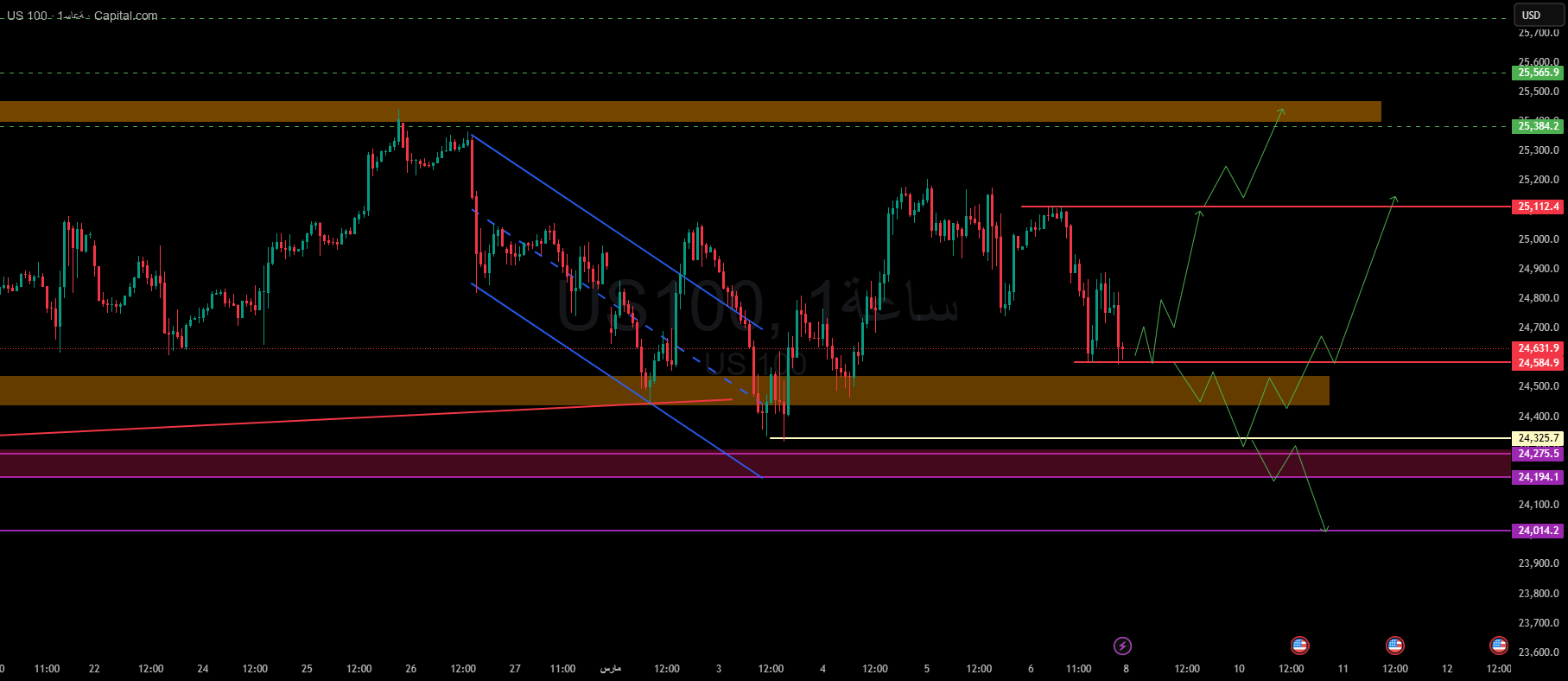 The area that price is now in is not random; rather, it is a balance between demand around 24,500 and selling pressure around 25,112.