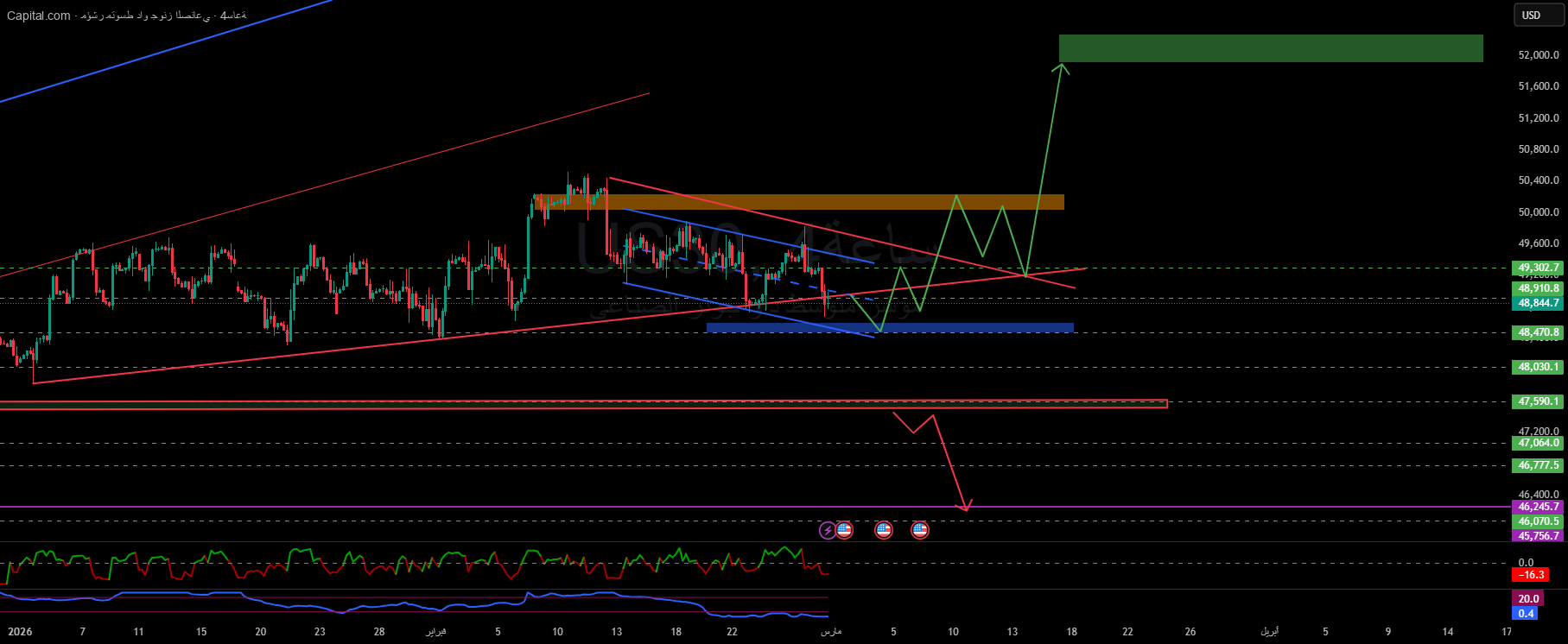 ▪️ Price retested the 48,400 – 48,500 area multiple times.