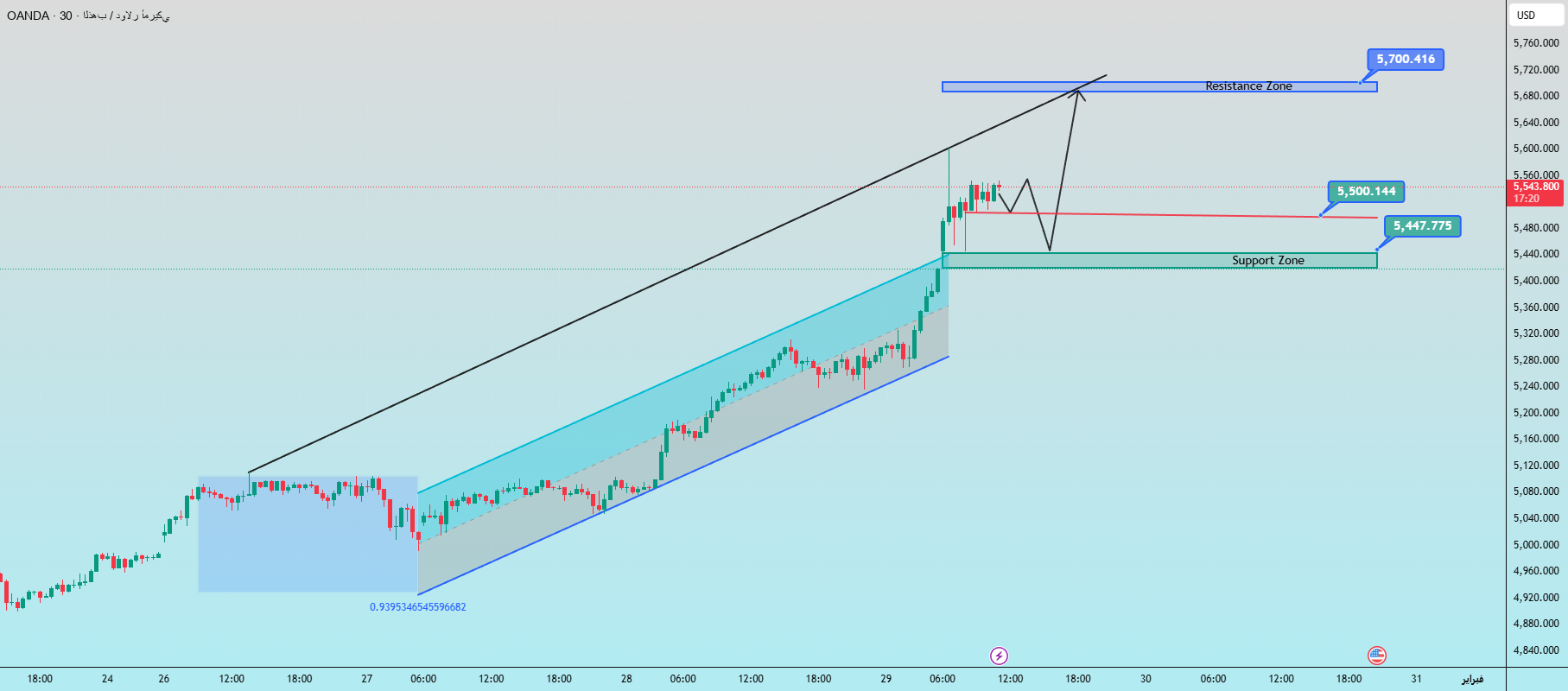 A clear breakout and close above 5,700 is needed to confirm the continuation of the upward price trend.