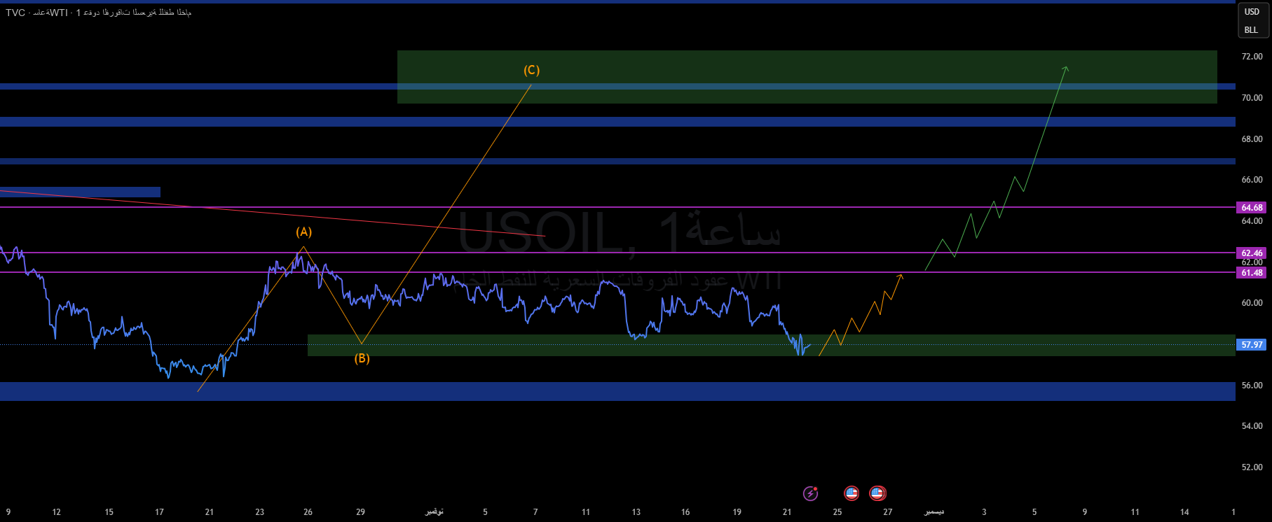 Once the price leaves the 58.20 zone, the bullish structure will begin to gradually move toward: