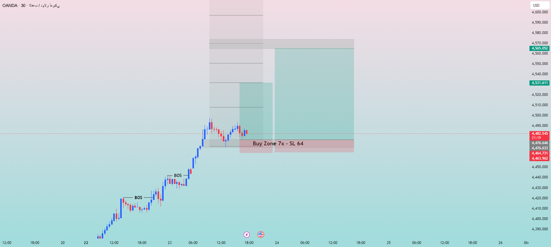 • Wait for price to correct or remain in buy zone 4,476 – 4,464