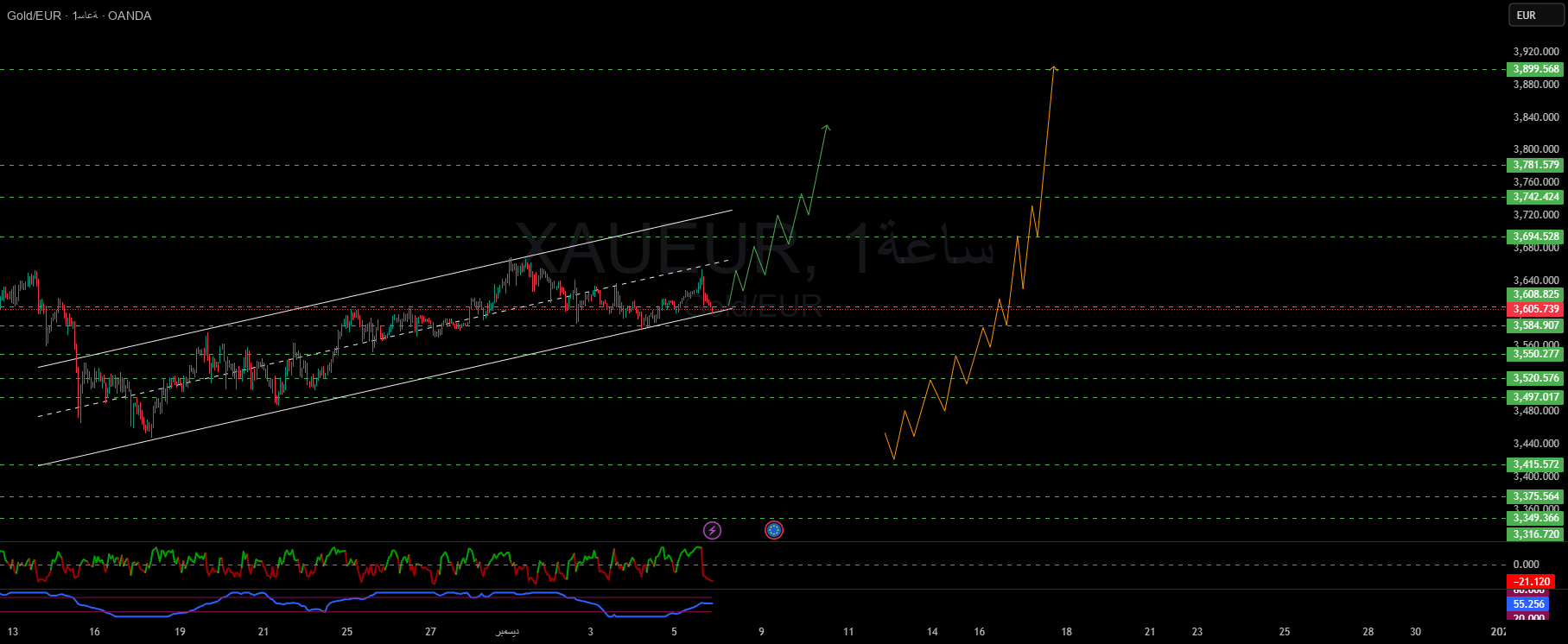 Channel lower limit: 3,575 – 3,585 euros
