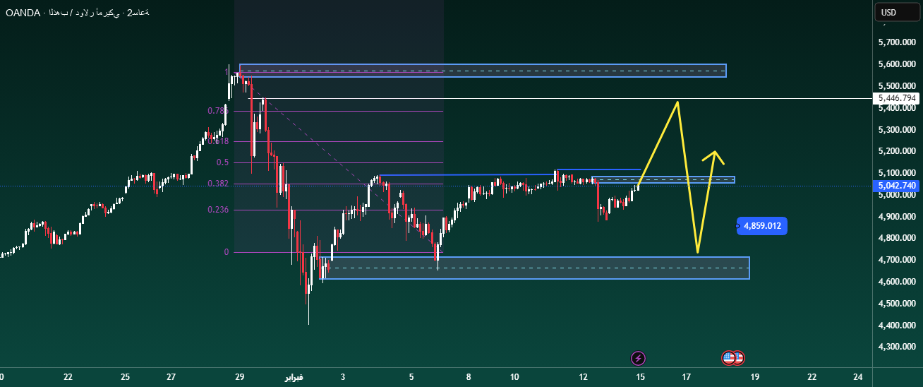 It pulled back to the liquidity cliff demand area of ​​4,850-4,900 at the beginning of the week → then the bullish trend continued to 5,400+.