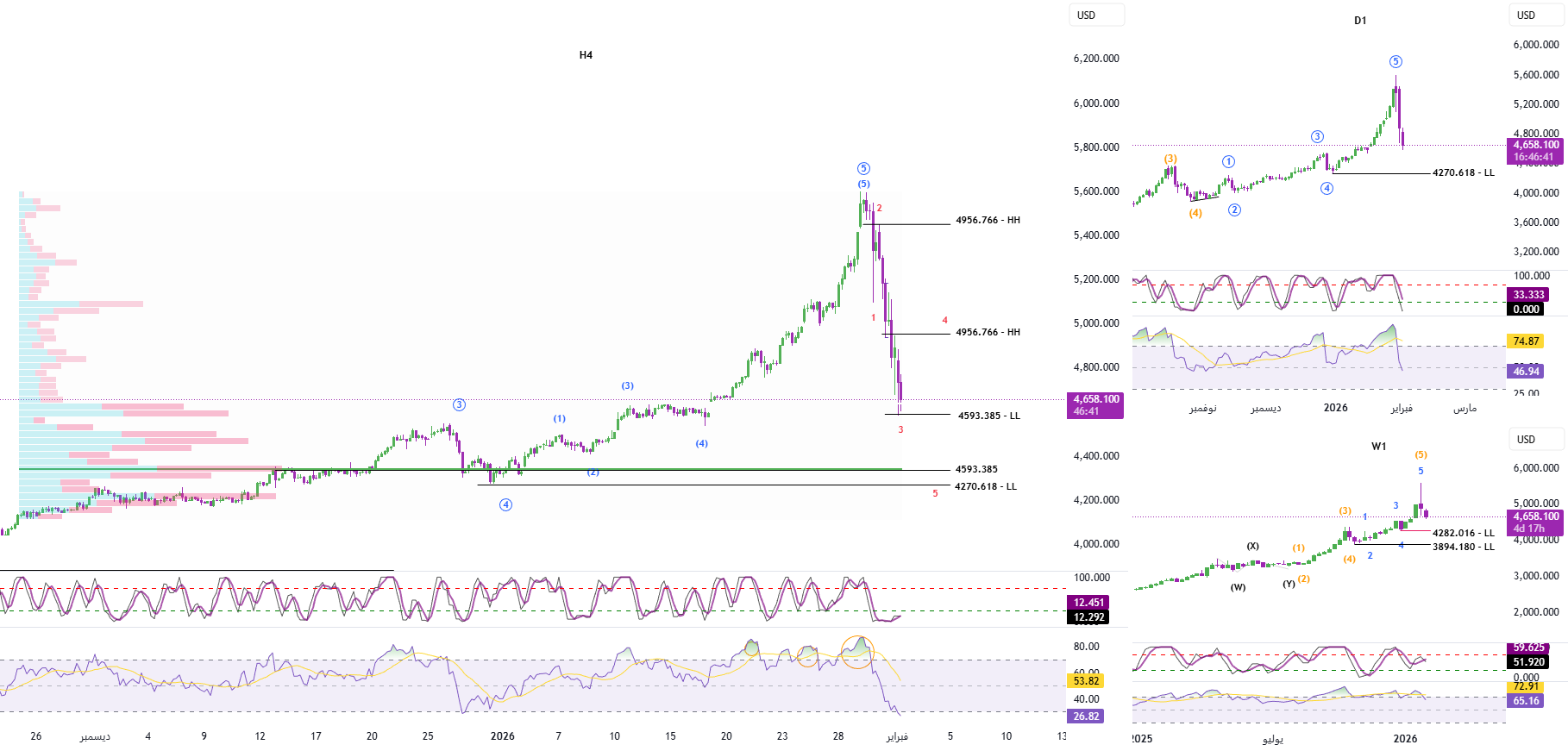 According to the volume profile, the current price area around 4593 corresponds to the liquidity area,